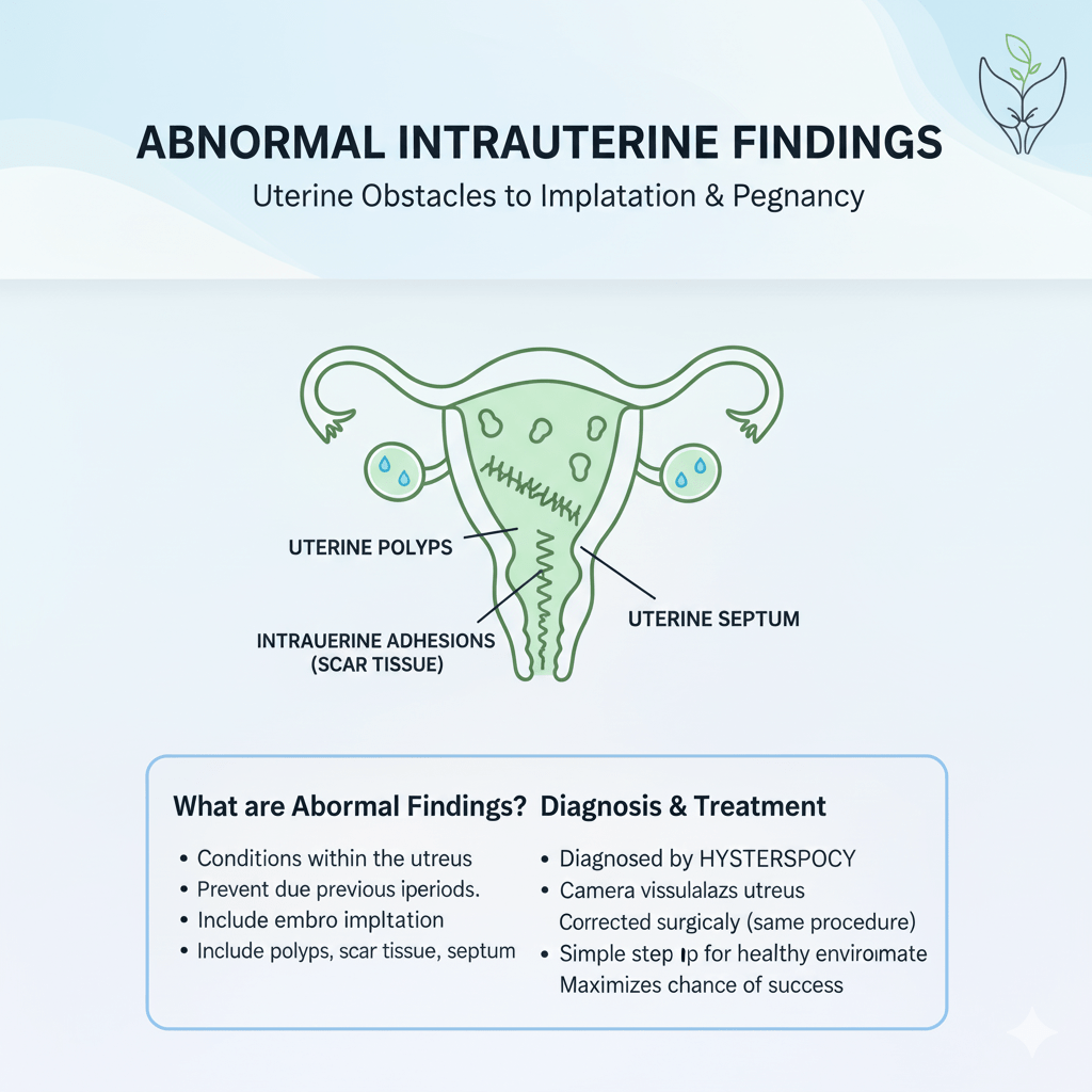 Abnormal Intrauterine Findings What are Abnormal Intrauterine Findings? Sometimes, conditions within the uterus itself can prevent an embryo from implanting. These can include uterine polyps, intrauterine adhesions (scar tissue), or a uterine septum.